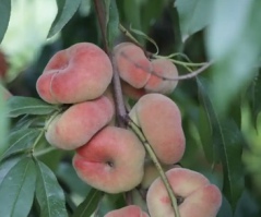 The Galaxy is a donut style peach with an intense flavor; semi-freestone.