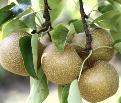 The Hosui Asian pear is a medium-large, semi-sweet and crisp fruit. It is slightly more acidic than its Asian counterparts and great for fresh eating and canning.