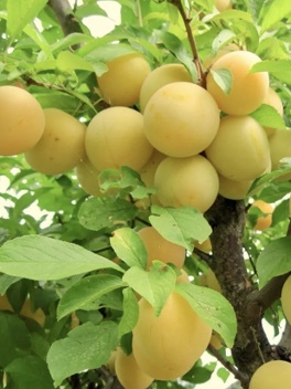 The Shiro Japanese plum is a large fruit with a mildly sweet flavor; clingstone variety.